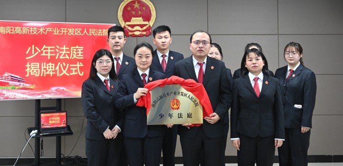 为贯彻落实《最高人民法院〈关于加强新时代未成年人审判工作的意见〉》,有效落实《未成年人保护法》、《预防未成年人犯罪法》及《刑法修正案(十一)》的相关内容,4月23日上午,南阳高新技术产业开发区人民法院举行少年法庭揭牌仪式。仪式由高新法院分党组副书记、副院长肖新征主持,高新检察院分党组成员、副检察长裴先茹一行应邀参加揭牌仪式。少年法庭重点关注未成年人权益保护,集中受理涉未成年人刑事审判工作及开展未成年人罪犯帮扶帮教工作。