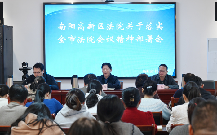 10月16日下午,南阳高新区法院召开会议,针对全市法院1—9月审判执行质效讲评会会议要求,研究部署落实举措,明确目标任务,凝聚奋起共识,力争以更加优异的成绩完成全年工作目标。分党组书记、院长何志主持并讲话,各审判业务团队全体干警参会。